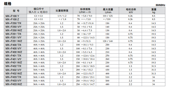 ● MX-F 系列主要过流端部件采用了优质的耐腐蚀材质如氟塑料(ETFE)等。